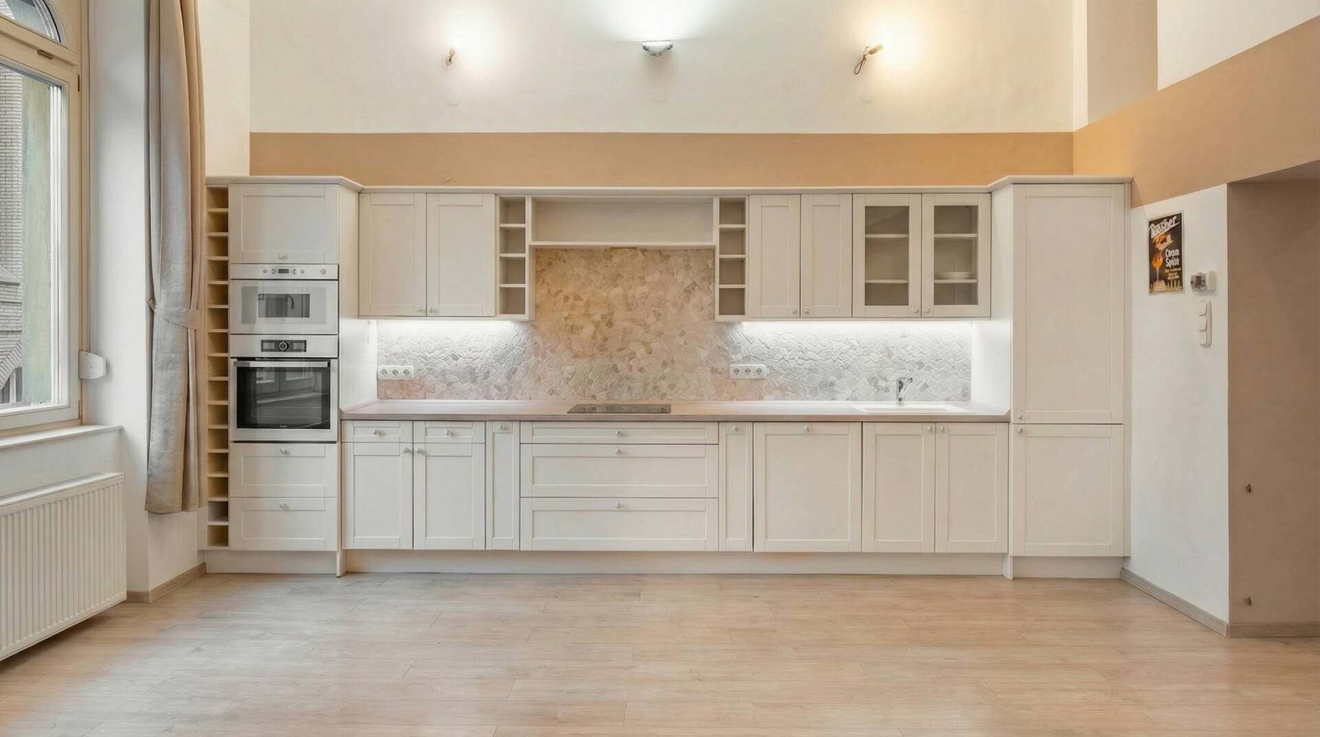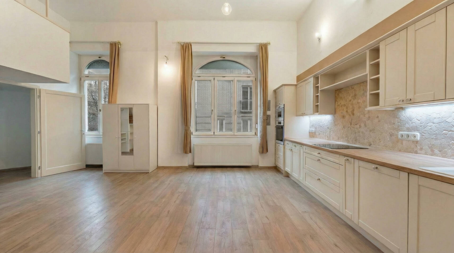 A nappali amerikai konyhás kialakítású, jól bútorozható, a terek arányosak és kifejezetten élhetőek.