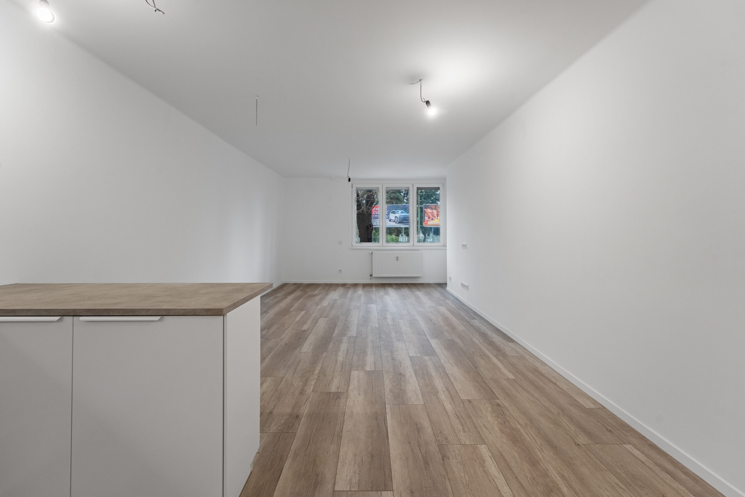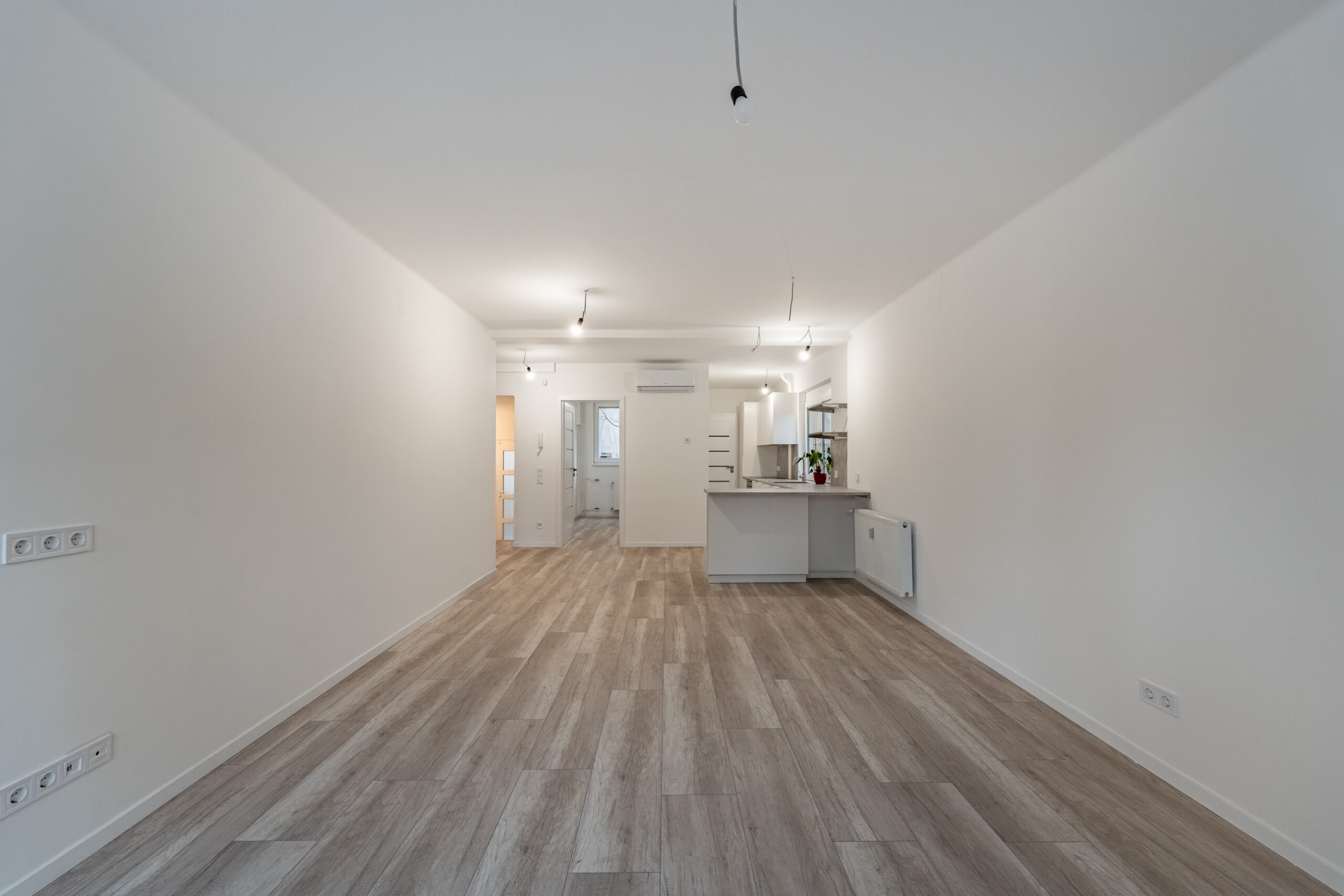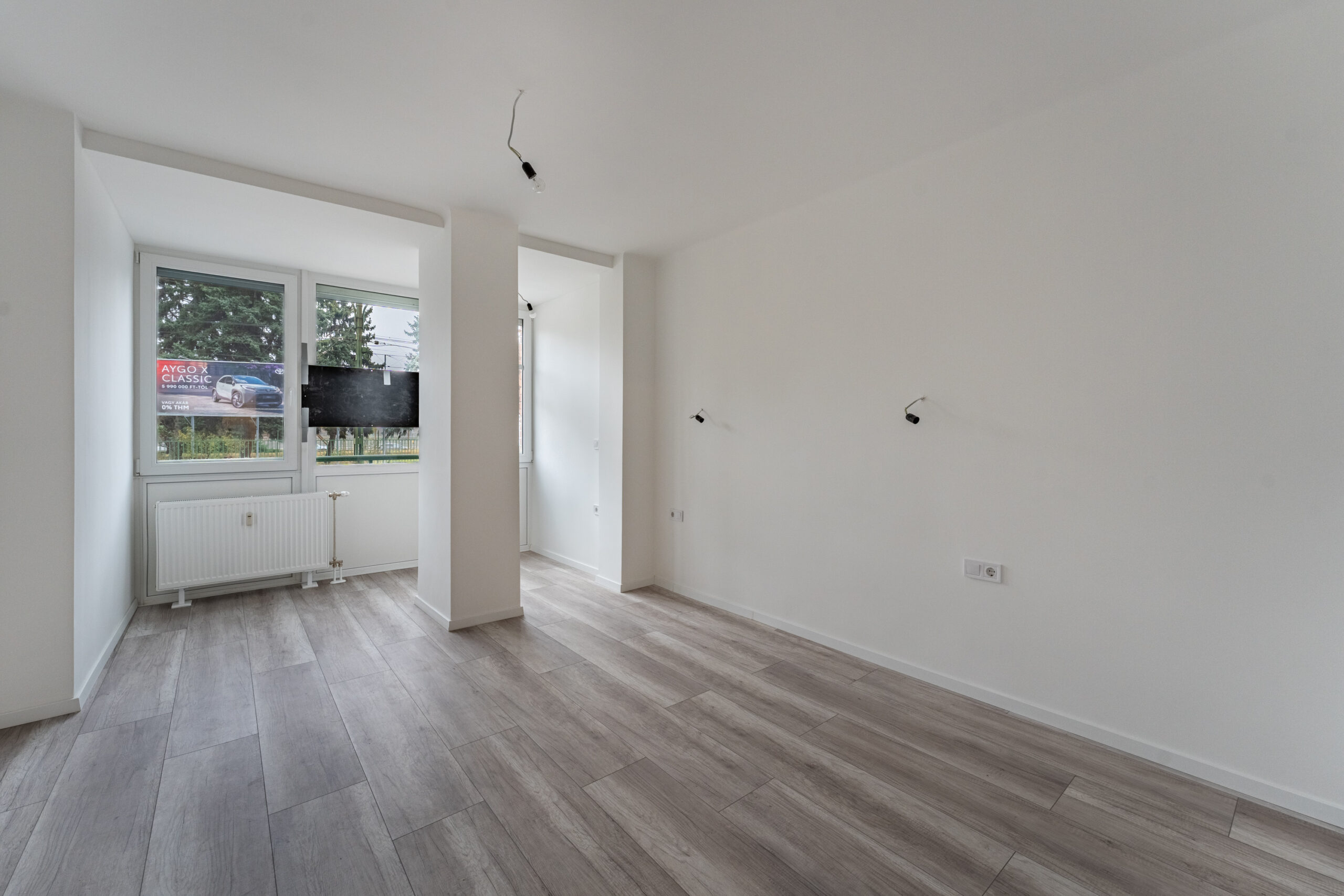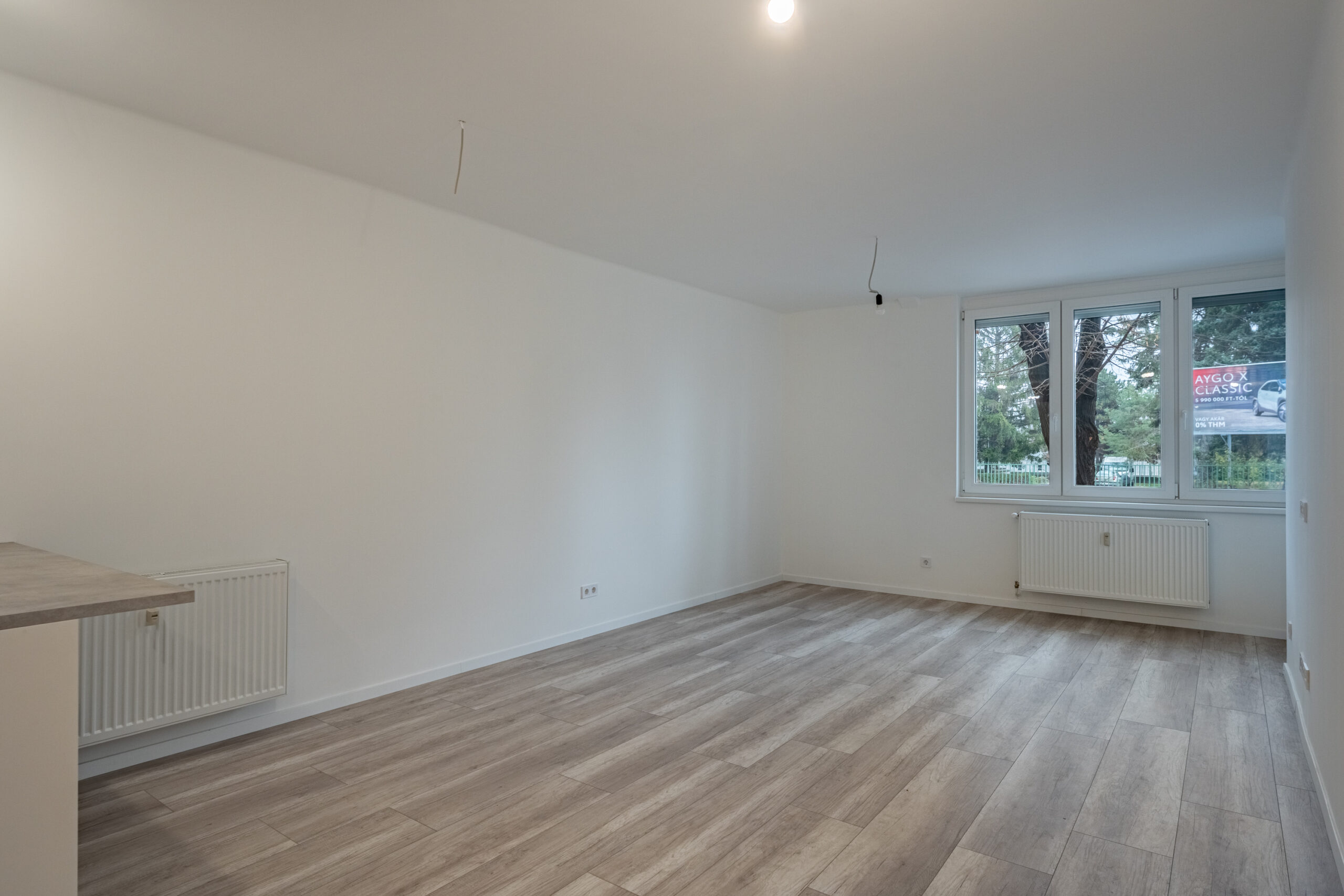 A konyha mellett került kialakításra az első hálószobánk, szemben pedig a másik hálószoba, illetve a nappali található.