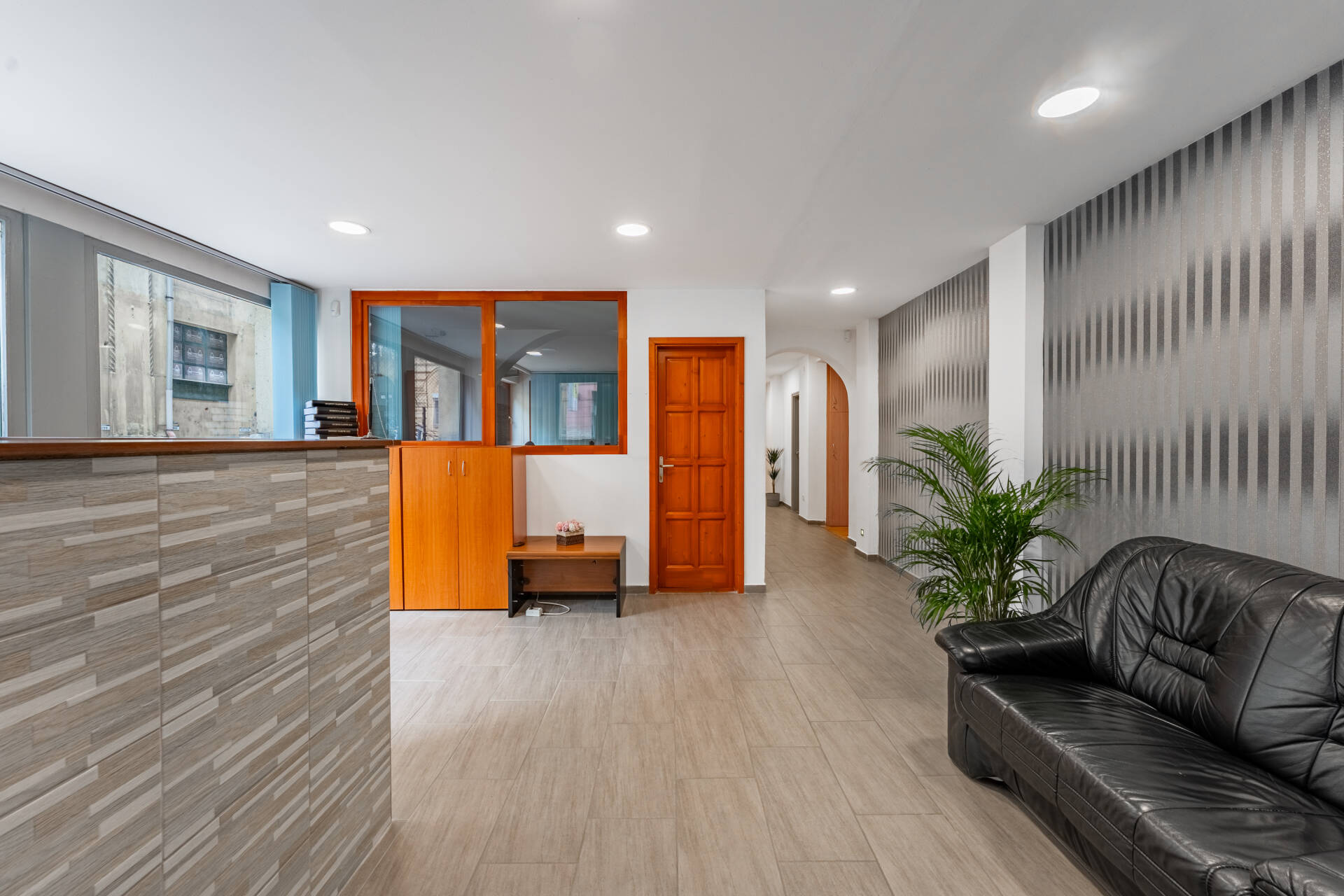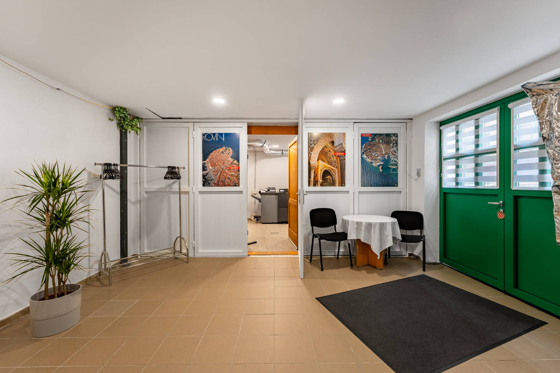 Földszint: több irodahelyiség, nyomda, tárgyaló, recepció, valamint tárolók – mindez igényes belső kialakítással és jó elrendezéssel.