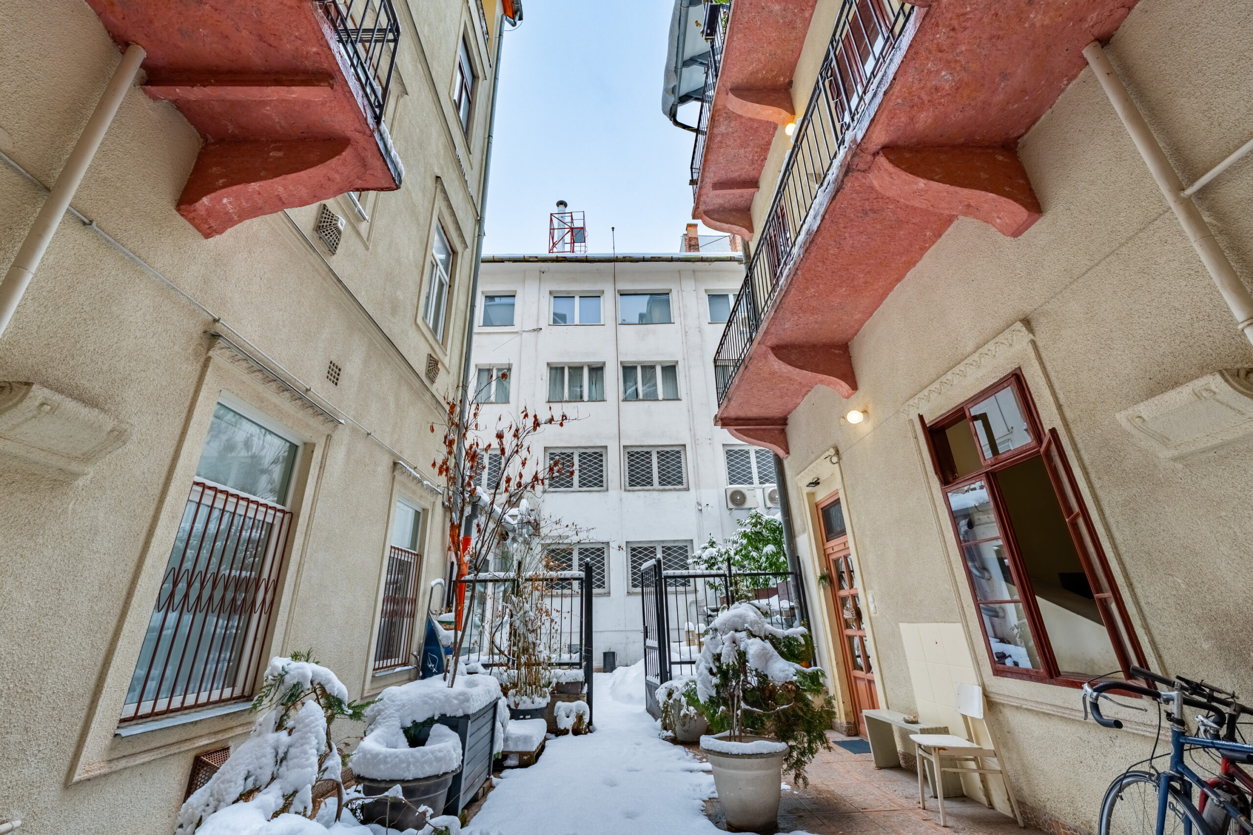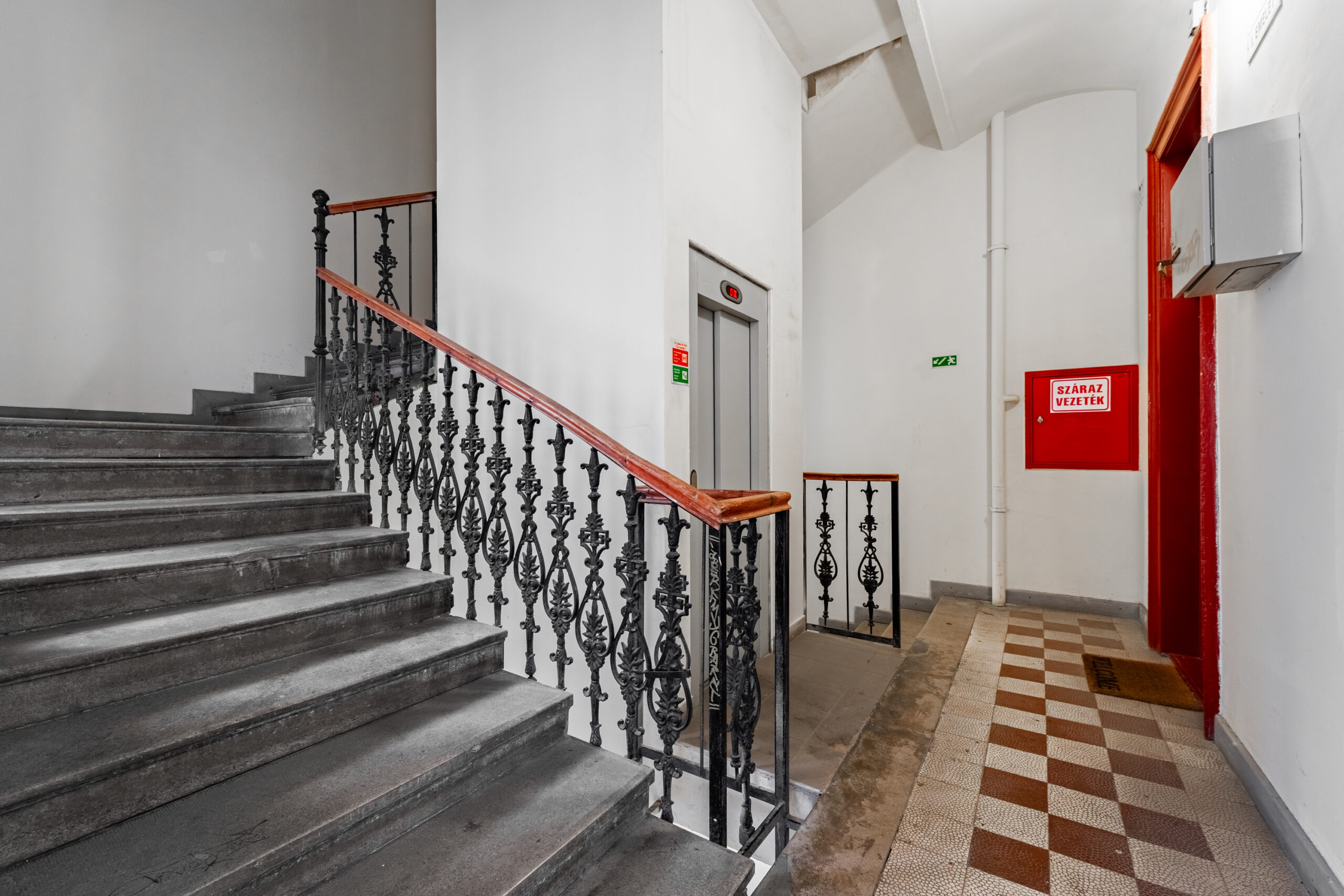 A társasház remek állapotban van, hiszen nemrégiben beépítették a tetőteret, ennek köszönhetően felújították a külső és a belső homlokzatot is, lift került beépítésre és az udvar is megszépült.