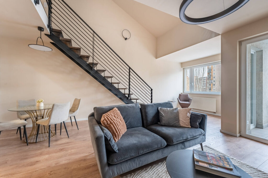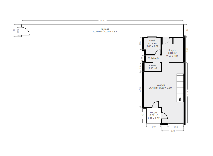 Az ingatlan elosztása kiváló hiszen a tágas nappali mellett két hálószoba került kialakításra, amelyek közül az egyik nyitott jellegű, így dolgozószobaként, vendégszobaként vagy akár gardróbszobaként is tökéletesen használható.