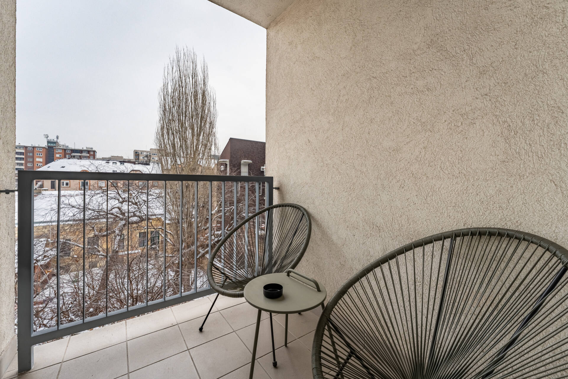Elhelyezkedése kiváló. A Corvin Plaza, a metró, a villamosok, az éttermek, a kávézók, az edzőtermek és a belváros pezsgő élete néhány perc sétával elérhető, miközben a lakás mégis nyugodt, zöld környezetre néz.