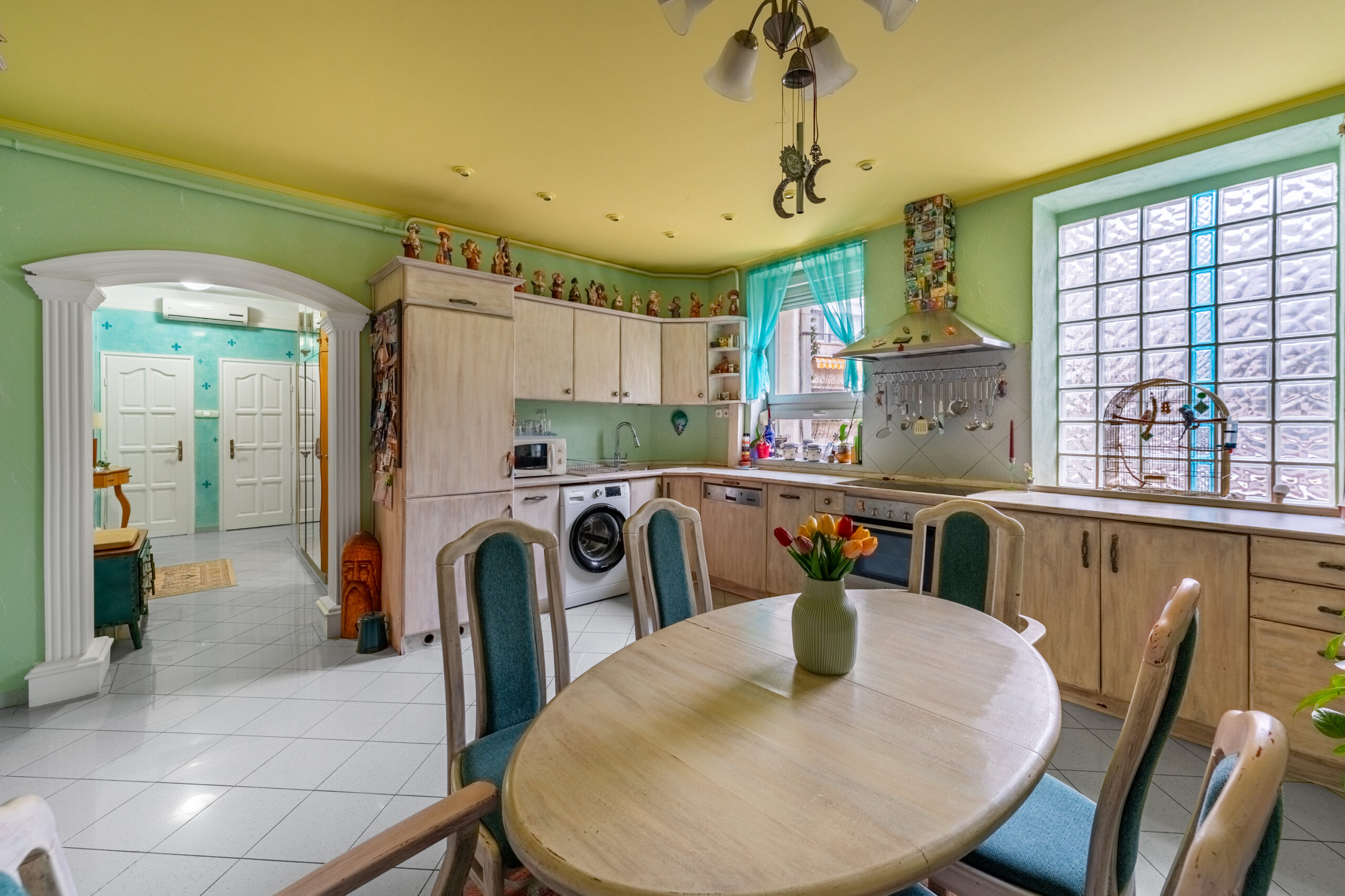 A lakás hűtő-fűtő klímával felszerelt, a közel 60 cm vastag falak egész évben kellemes hőmérsékletet biztosítanak.
