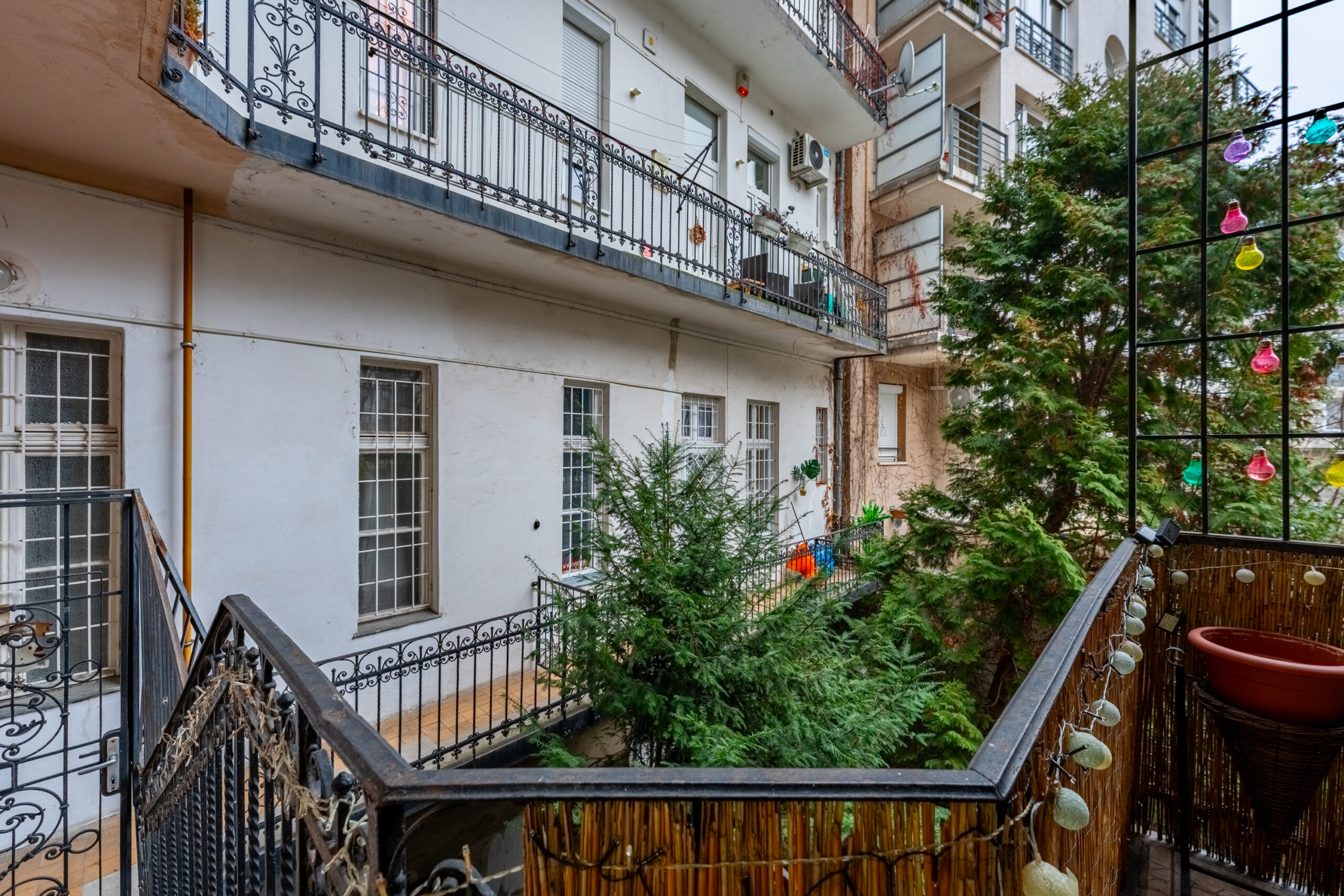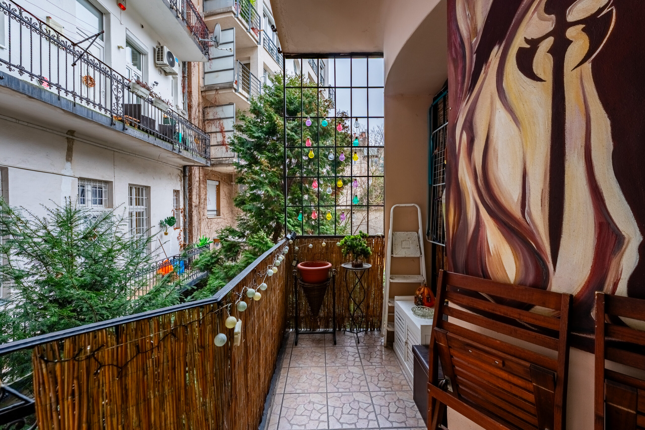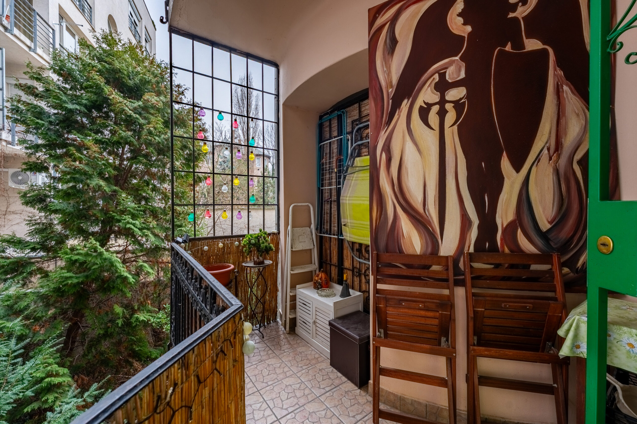A hangulatos kis erkély ideális helyszíne lehet a reggeli kávézásnak vagy egy nyugodt esti pihenésnek.