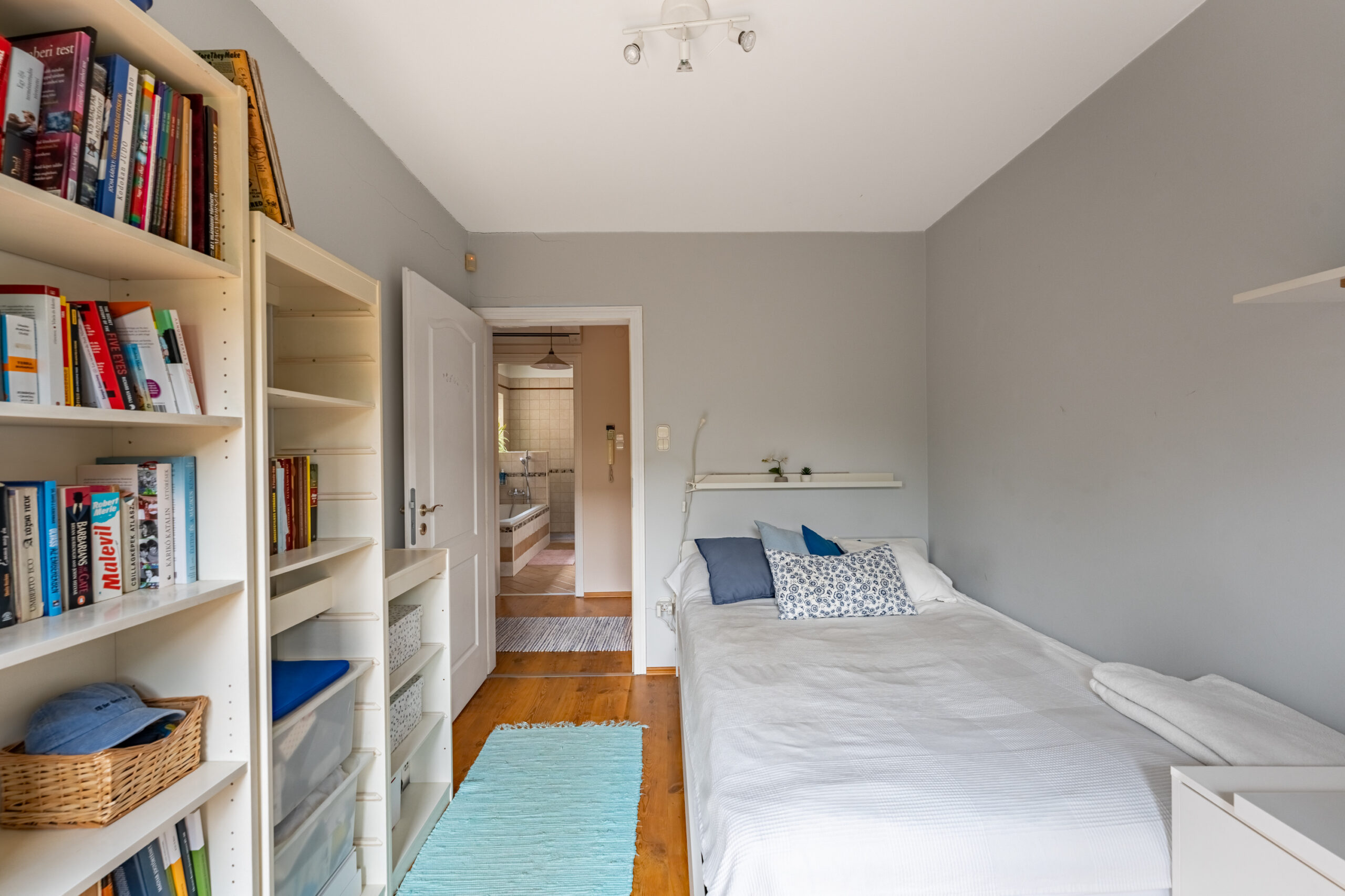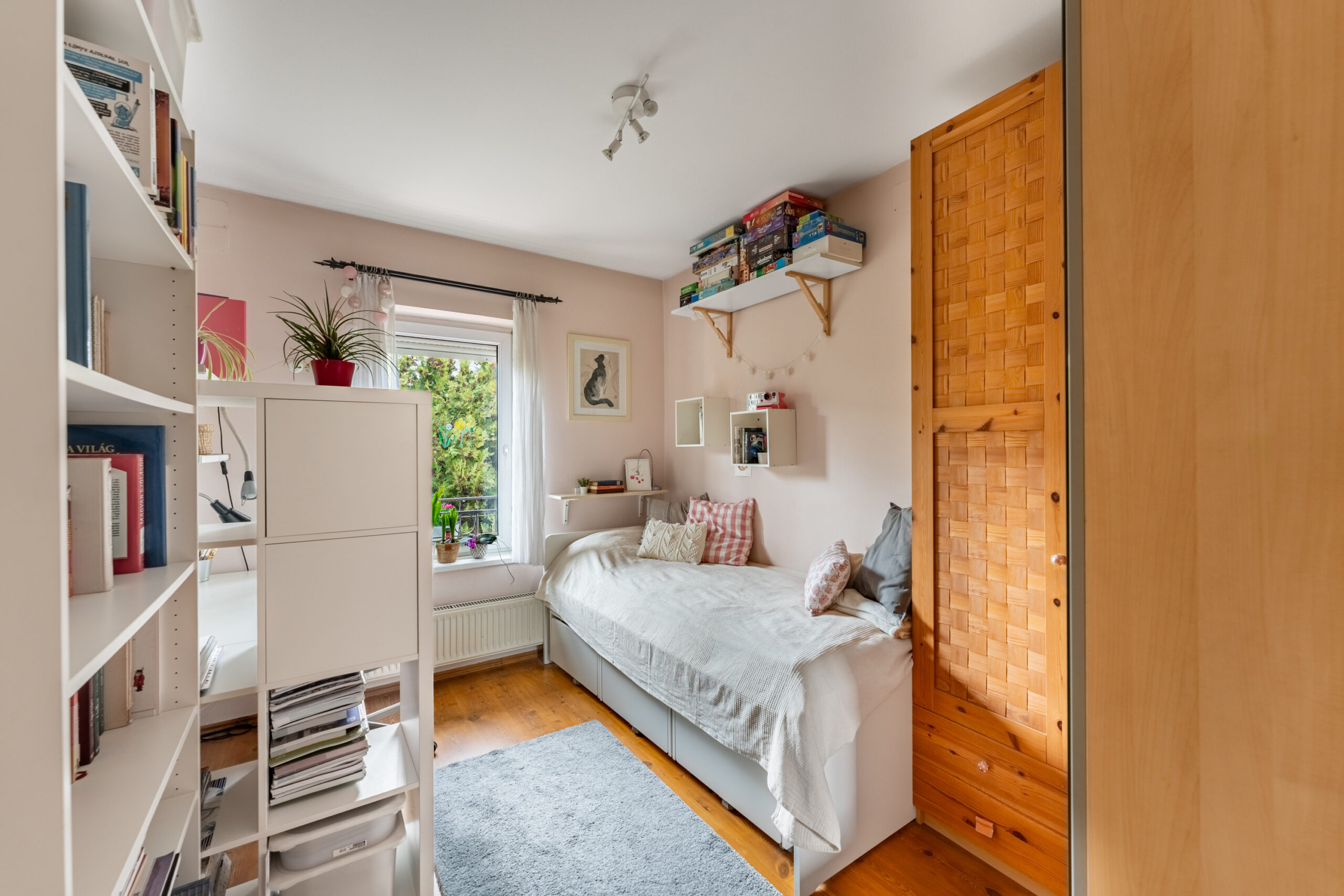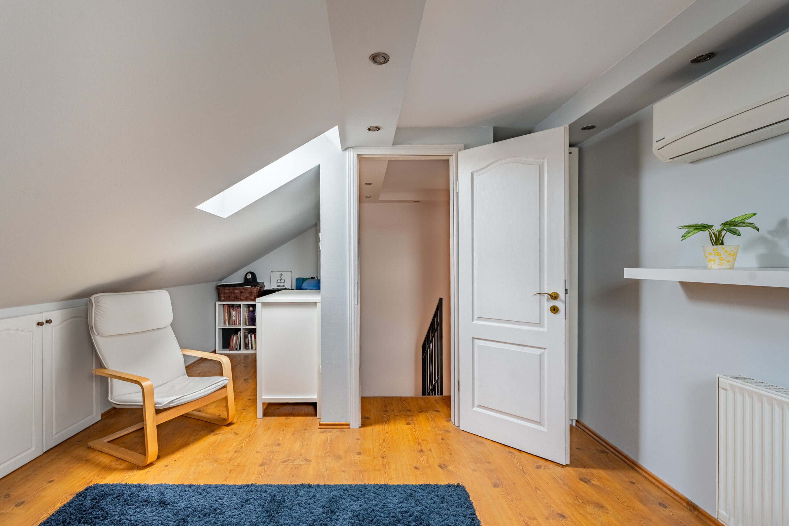 Még egy emelettel feljebb lépünk be egy szeparált, 18 négyzetméteres lakrészbe, melynél csak a fantázia szab határt, hogy éppen hálónak, mozi szobának vagy éppen dolgozónak hasznosítsa az ember.